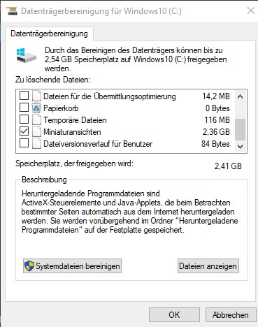 Um gleich noch mehr Platz auf dem Windows-System zu schaffen, hilft anschließend noch das Windows eigene Werkzeug: Datenträgerbereinigung:
